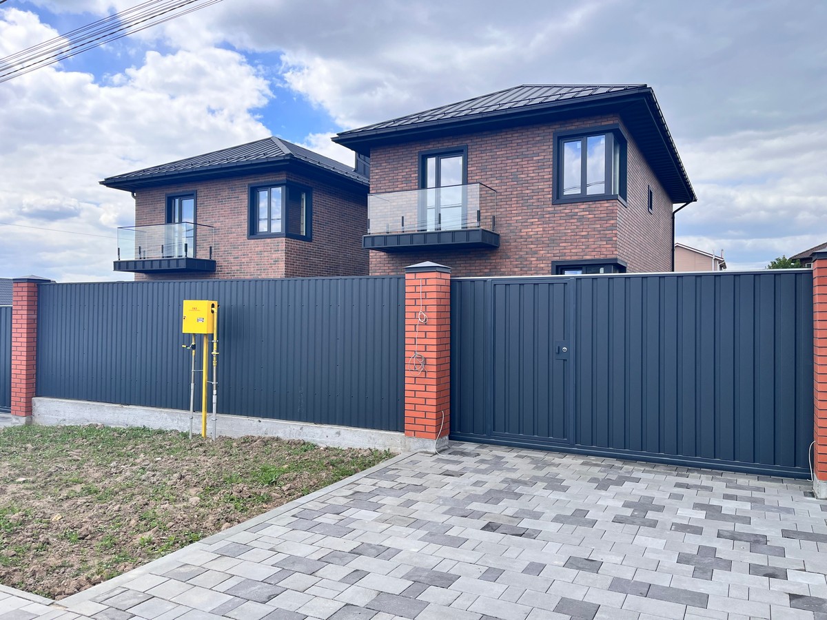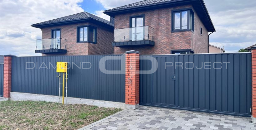 Ділянка огороджена забором, встановлені відкатні ворота. Викладена тротуарна плитка.