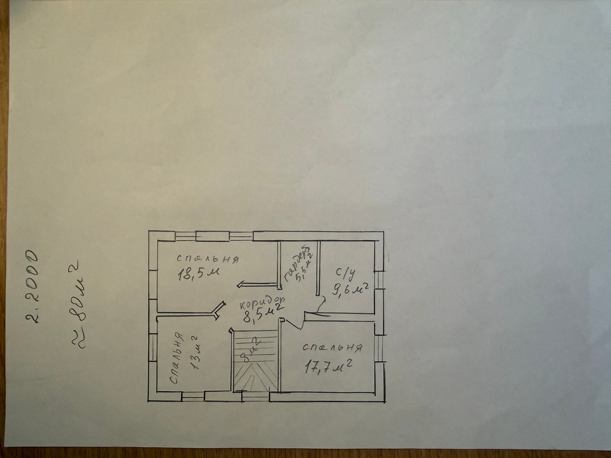 • 5 кімнат, 2 санвузли, гардеробна.