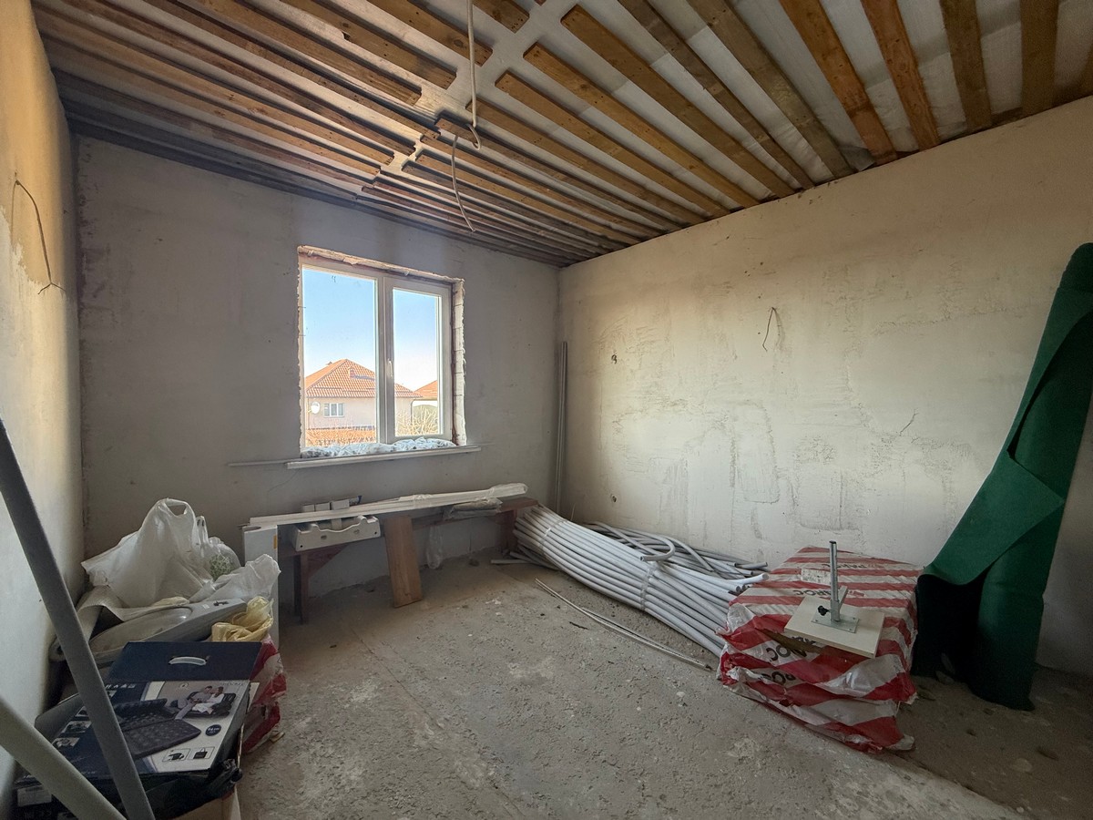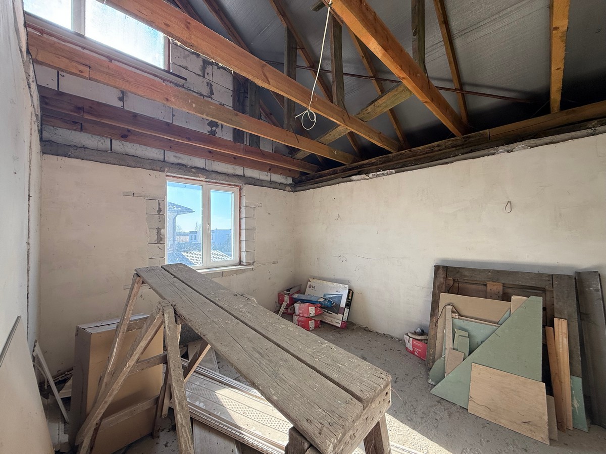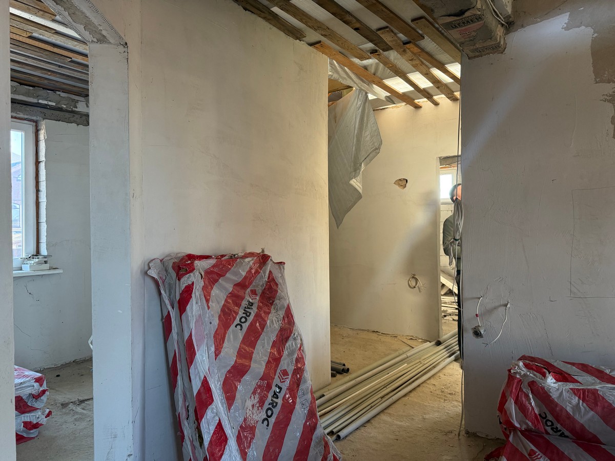 У будинку вже виконана штукатурка стін та розводка електрики.