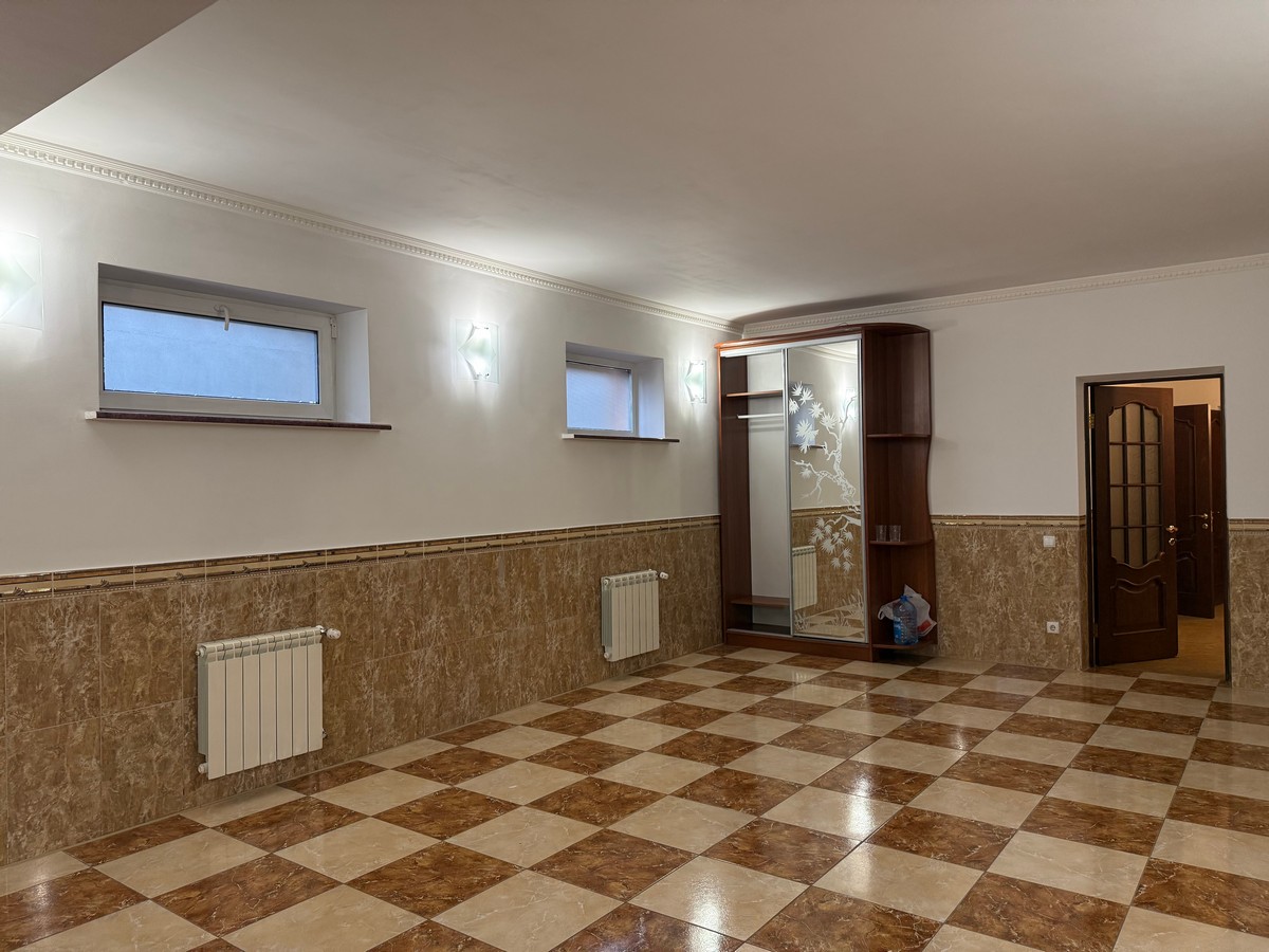 Великий підвал у якому розташований банний комплекс із сауною та басейном, приміщення, яке чудово підійде для спортзалу та ігрової. Також його можна використовувати як бомбосховище завдяки монолітній конструкції.