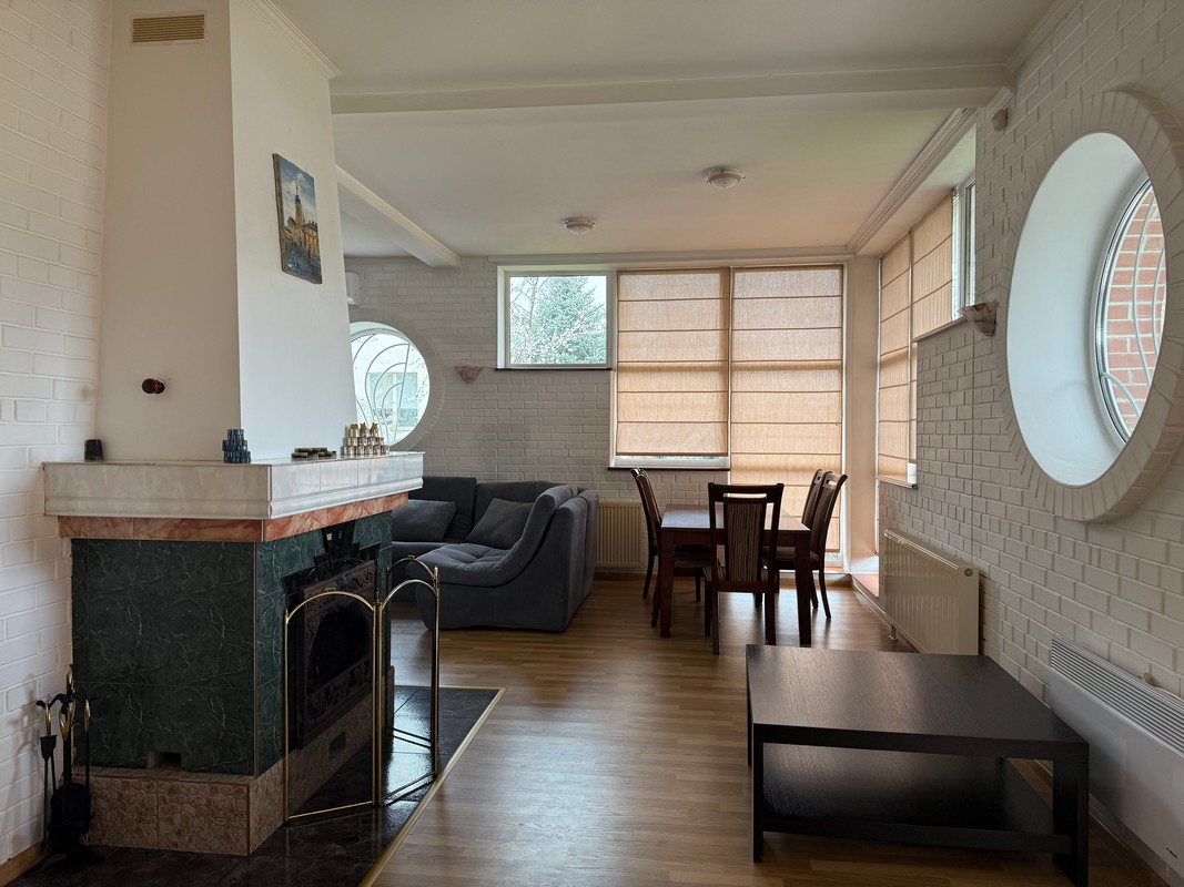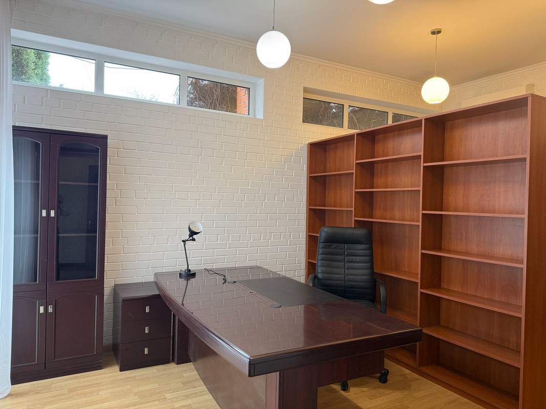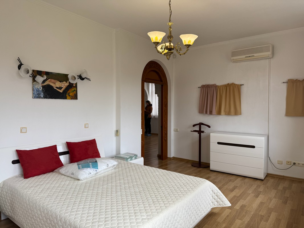 На трьох поверхах є все необхідне для комфортного проживання, кухня-вітальня-їдальня, кабінет, камінний зал, гардеробні, 4 спальні, три санвузли, підсобні приміщення.