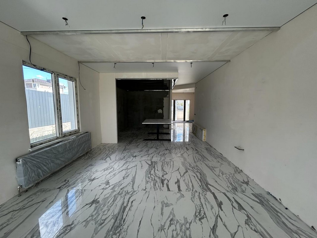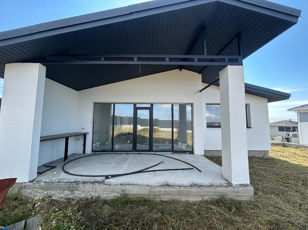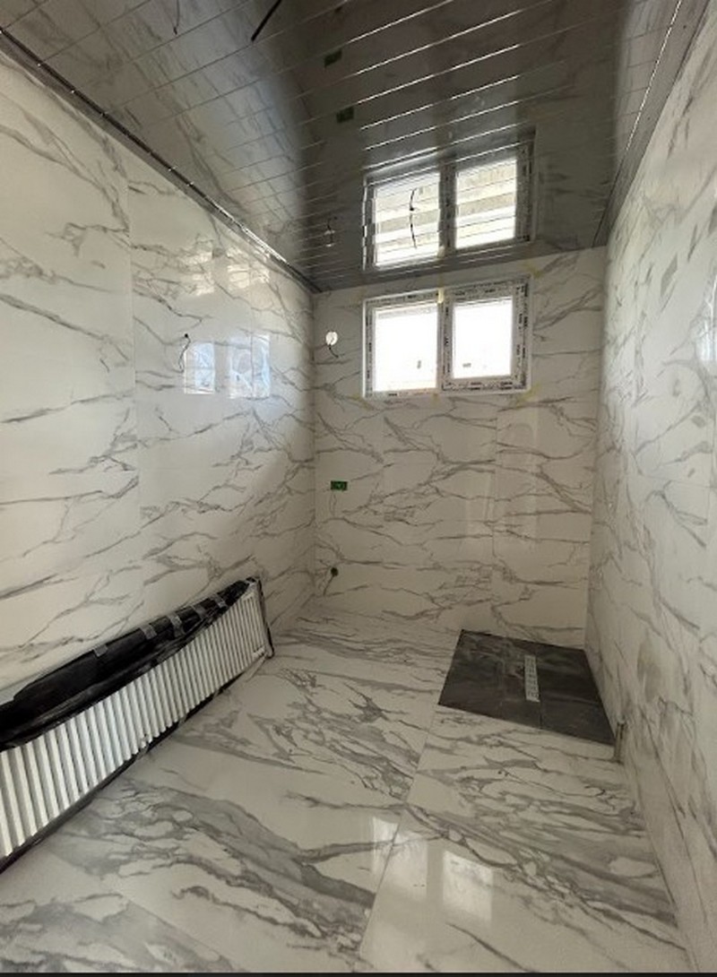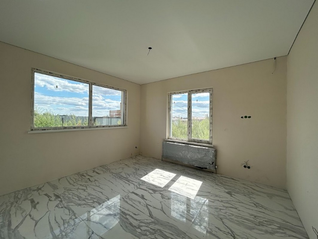 Проведена тепла підлога по всьому будинку. Встановлені внутрішньо підлогові конвектори, установлена натяжня стеля, стіни готові під фарбування. По полу укладена широкоформатна плитка.
