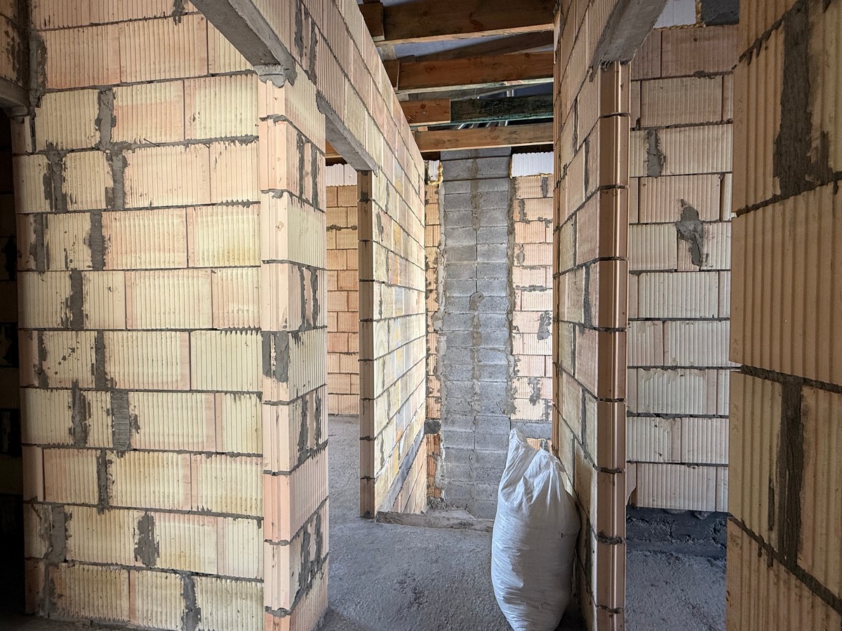 Будинок збудований з керамоблоку, ззовні утеплений пінопластом. Монолітне міжповерхове перкриття.