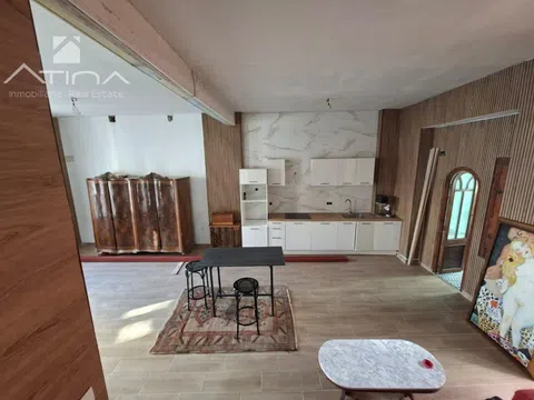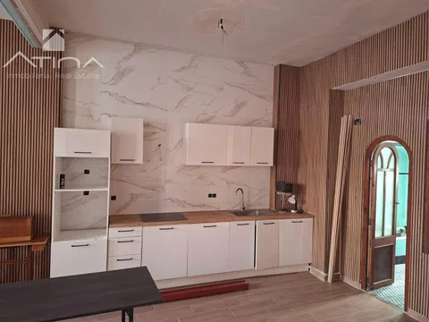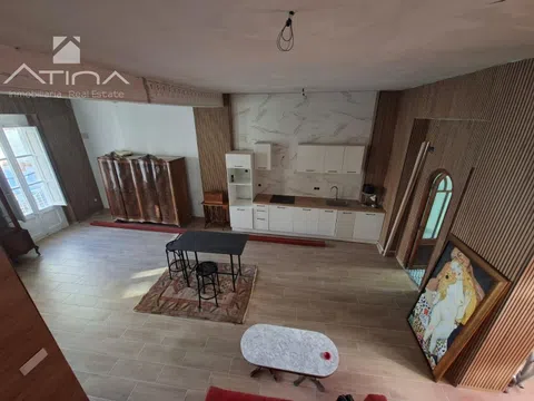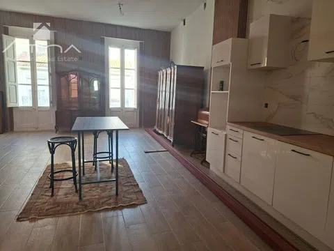 Перший поверх включає в себе простору вітальню з їдальнією та відкритою кухнею в сучасному стилі, що елегантно поєднує традиційні елементи. Великі вікна наповнюють простір природним світлом та виходять на зовнішню терасу, ідеальну для моментів спокою в центрі міста. Повністю оновлений санвузол доповнює цей поверх, з сучасними матеріалами та оздобленням, що підкреслюють історичний характер будинку.
