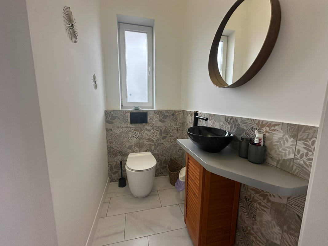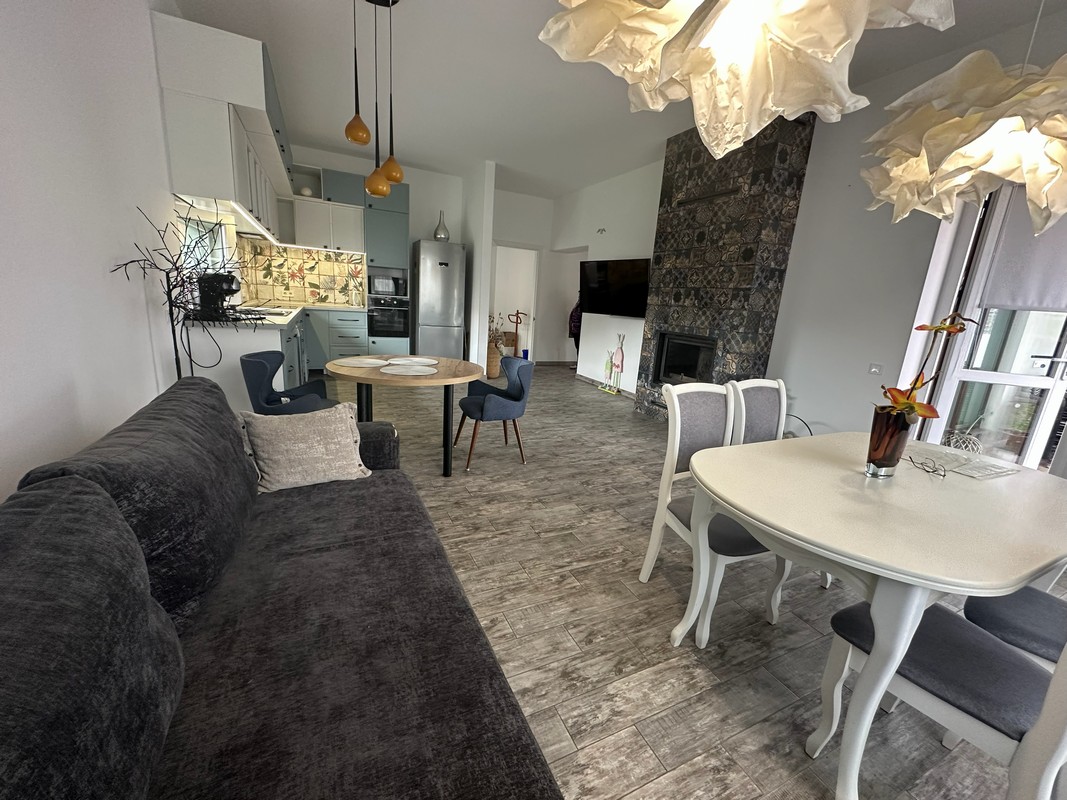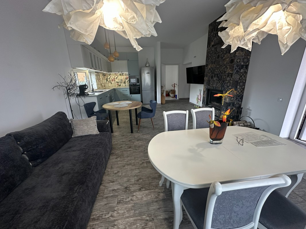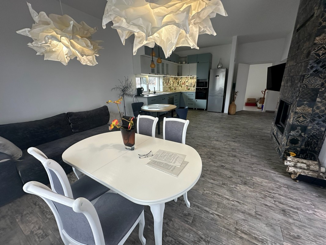 В будинку комфотне планування, простора кухня-вітальня з каміном та виходом на терасу, 3 кімнати, 2 санвузли, котельня та кладова.