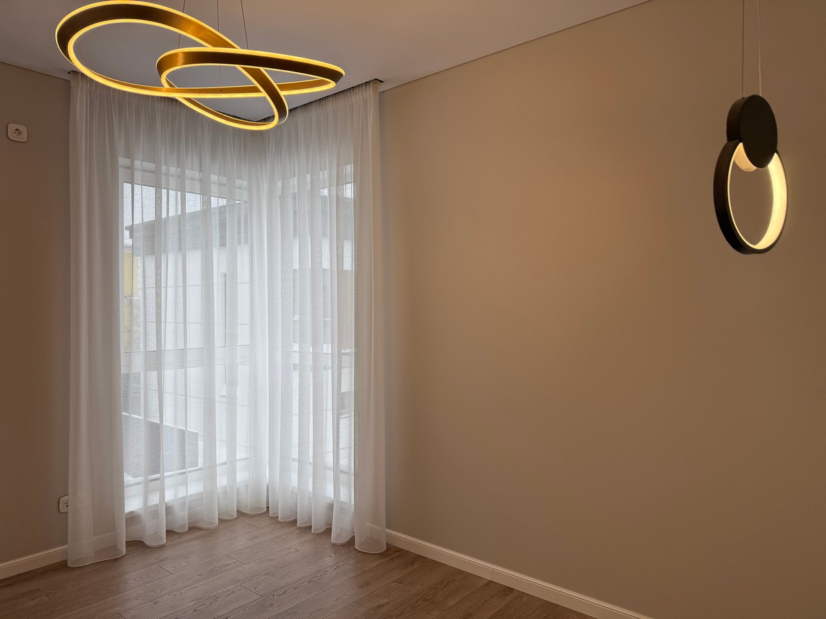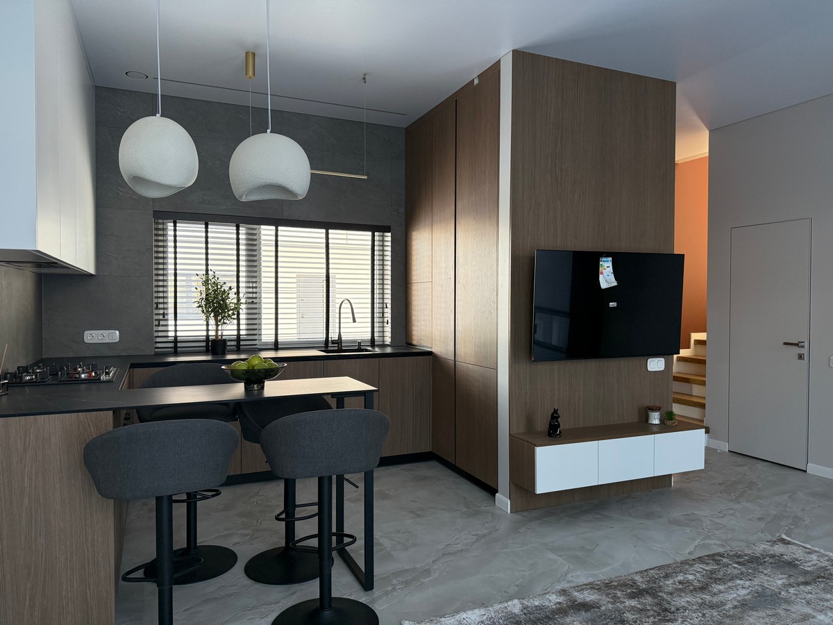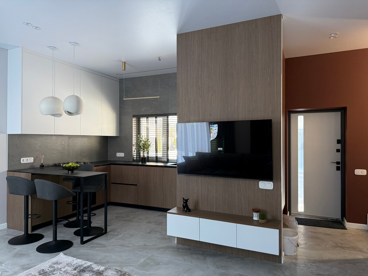 Будинок має кухню-вітальню, 4 окремі кімнати, 2 санвузли та гардеробну.